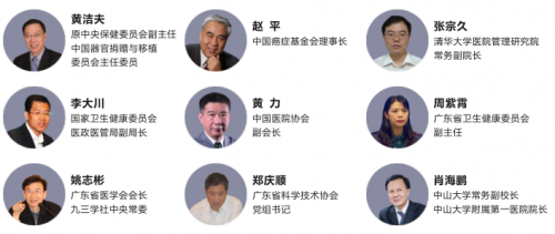 出席本届大会的领导嘉宾有原卫生部副部长黄洁夫,中国癌症基金会理事长赵平,原国家卫生健康委员会医政医管局局长、清华大学医院管理研究院常务副院长张宗久,国家卫生健康委员会医政医管局副局长李大川,中国医院协会副会长黄力,广东省卫健委副主任周紫霄,广东省医学会会长姚志彬,广东省科学技术协会党组书记郑庆顺,中山大学常务副校长、中山大学附属第一医院院长肖海鹏,中山大学附属第一医院副院长何晓顺,中山大学附属肿瘤医院院长徐瑞华等一众医学大咖;出席本届大会的院士有李兆申院士、吴清平院士、陈勇院士、陈新滋院士、林东昕院士、樊嘉院士、董家鸿院士等十余位两院院士。