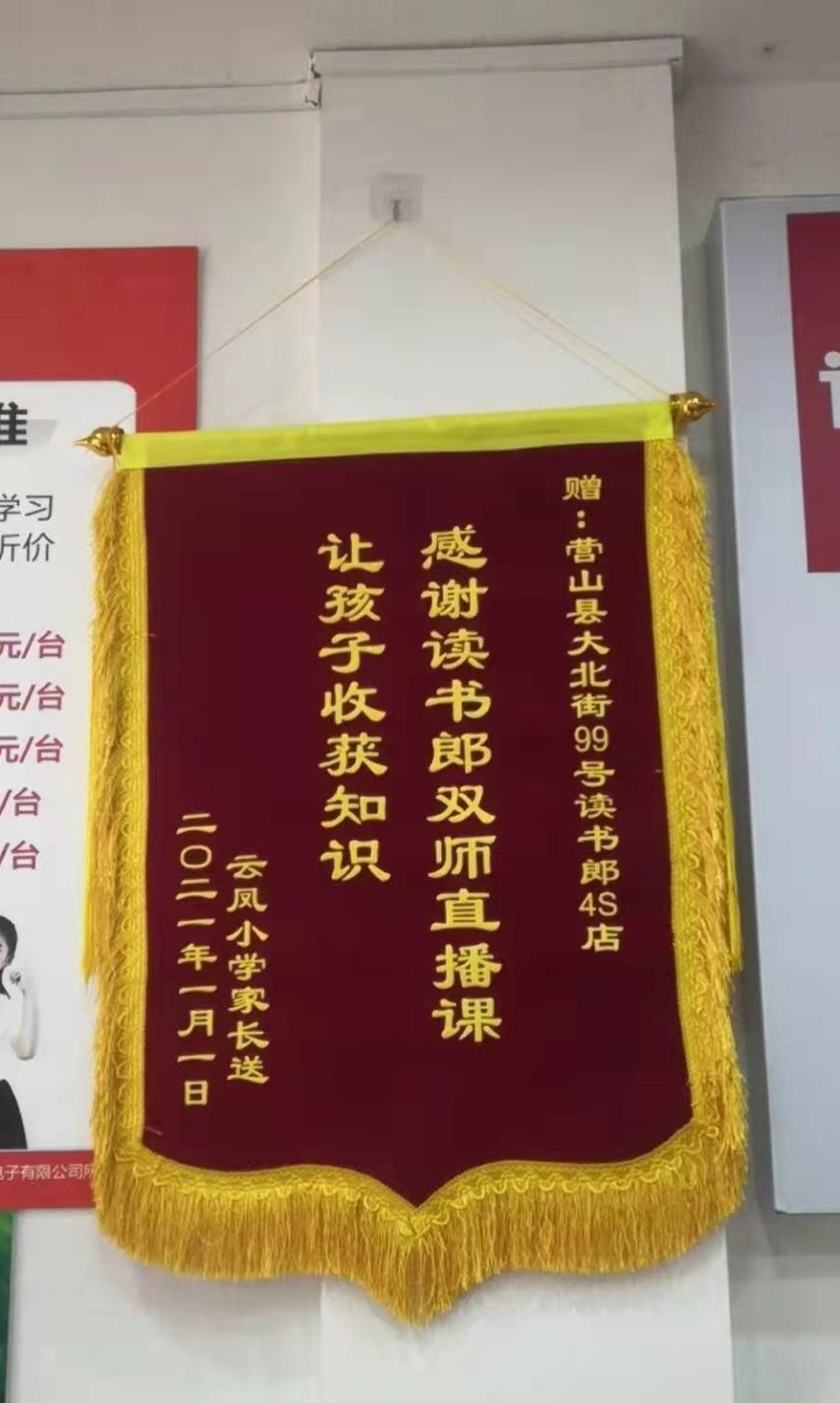 在采访了多名成绩表现良好的同学后,笔者发现他们身上有一个共同点:对学习规划目标明确、时间安排周密有条不紊,且还是读书郎教育平板的忠实拥护者。对此,读书郎线下门店还收到过家长送来的锦旗,感谢读书郎学生平板和内置的在线课程资源帮助孩子在学业上取得了巨大的进步。
