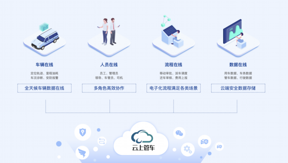 针对这种现象,云上管车早就给了出解决方案。基于团队十余年的车联网服务经验以及对产品的不断打磨,云上管车将移动办公与企业用车管理进行深度融合,通过实现车辆在线、人员在线、流程在线与数据在线,开创出了一个全新的管车时代——办公协同管车。