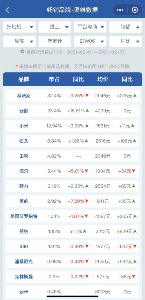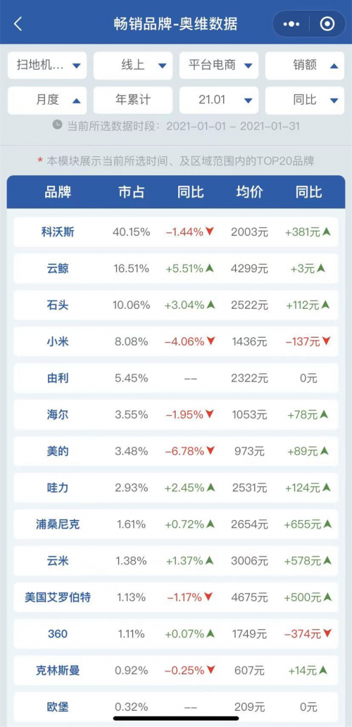 随着技术的不断革新,扫地机器人具备更智能的感知、决策、执行能力,俨然成为了服务机器人领域的“香饽饽”。回顾2020年扫地机器人行业:据奥维数据,2020年国内扫地机器人行业线上累计销量同比+10.25%,销额同比+25.37%。