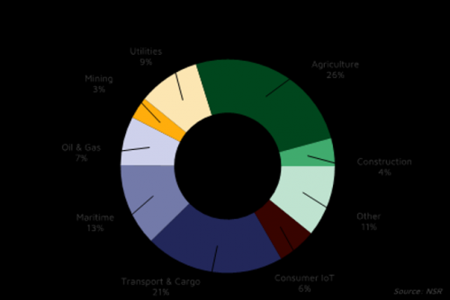 图:调研机构NSR发布的卫星物联网应用市场预测
