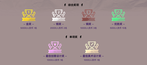 为了以更多元的视角评选和挖掘更多优秀作品,2021年腾讯高校游戏创意制作大赛共设置有四个综合奖项,最高奖金5万元,以及最佳创意、最佳美术设计两个单项奖,奖金各1万元。