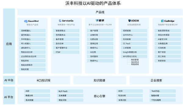 目前,沃丰科技已形成业内最全的产品矩阵,是国内领先的AI驱动的客户服务、CRM和客户体验解决方案提供商。