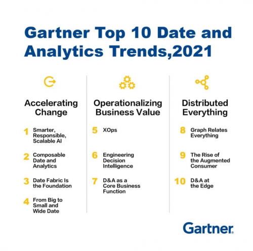 Gartner 近期发布了2021年最新的Top 10 Data and Analytics研究报告,报告根据大量调研列出了最新的数据分析十大关键技术: