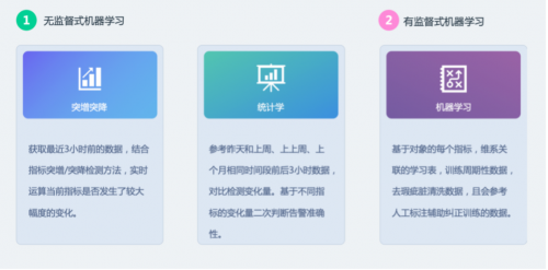 智能监控:基于AI算法及产品内置的监控逻辑,有效降低告警策略部署的复杂度;同时,通过有监督及无监督算法,实现精准告警。其主要的能力包括下述几点: