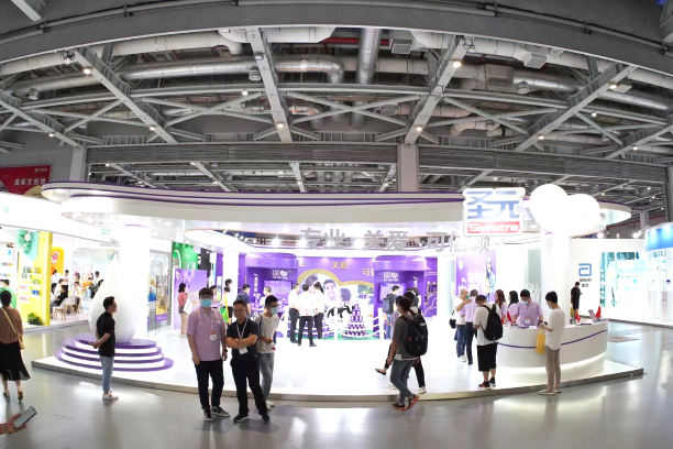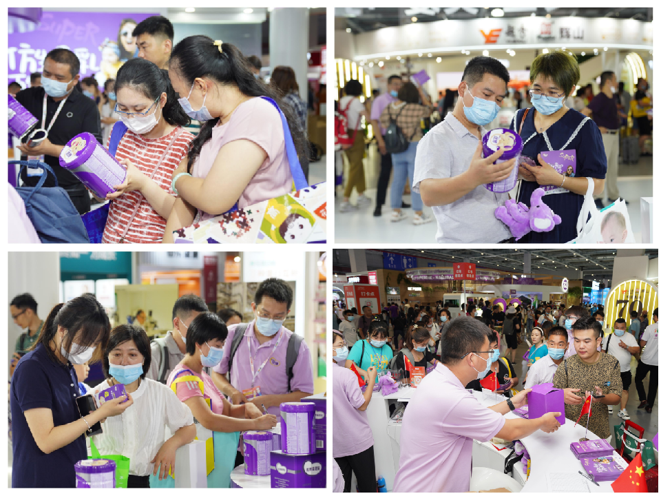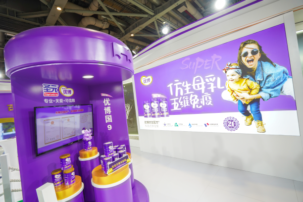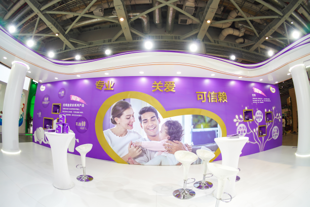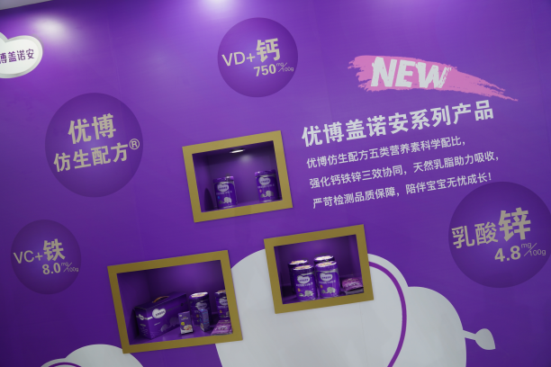 今年参展,圣元优博将展会主题定为“专业、关爱、可信赖”。在展馆现场,我们看到圣元优博整体设计依然以极简的紫白两色为主,其中白色呈现出纯洁、淡雅之态,紫色象征着高贵典雅而不失深沉,再辅以柔和的金色线条点缀成“心形”,勾勒出圣元优博对中国宝宝深沉而不失温情的爱。