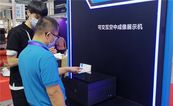 此外,空中成像提词器、10寸可交互空中成像展示机等产品也悉数亮相。空中成像提词器专为会务或政府机关研发,空中显示影像具备一定可视角度,仅正面使用者可见,配合自动翻页系统,可为用户营造一种“脱稿演讲”的效果。