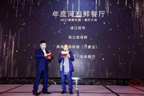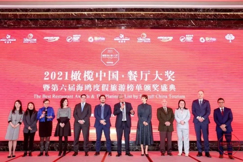 11月25日,周四,由知名生活方式媒体《橄榄画报》主办的“2021年度橄榄中国·餐厅大奖暨第六届海鸥度假旅游榜单”颁奖晚宴于上海静安瑞吉酒店盛大举行。本次共评选出19个类别的餐厅奖项以及年度杰出餐饮品牌、年度杰出连锁餐饮品牌、年度品尚烈酒大奖、年度佐餐威士忌大奖、年度食材大奖、年度创意合作大奖等特别奖项,以及年度卓越名厨、年度实力名厨、年度新锐名厨等人物奖项;以及年度海鸥中国·酒店总经理、BEST50年度酒店奖项。
