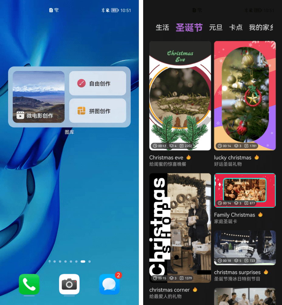 好友相聚一定可以留下许多照片,把它们用华为图库的“微电影创作”卡片制作成圣诞节主题Plog,保存在手机里,很久很久以后再回忆起,这些都是最温馨美好的旧时光。微电影创作里有几十种精美模板可选,总有一款适合你。