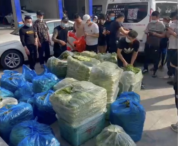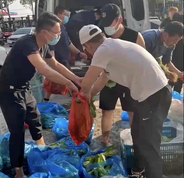 华老板的父亲以前是做蔬菜批发生意的,趁着还未进小区,他紧急调动资源,向附近菜农收菜,希望以此免费赠送给那些措手不及的人。