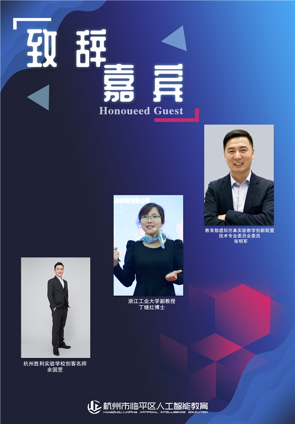 教育部虚拟仿真实验教学创新联盟技术专业委员会委员张明军、杭州胜利实验学校创客名师余国罡、浙江工业大学副教授丁继红博士等多位嘉宾分别在云端送上亲切寄语。
