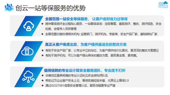 创云是身边最值得信赖的上云及等保顾问,要上云,找创云!过等保,找创云!如果企业有上云需求或希望为企业构建安全合规的信息网络体系,可以联系创云专业顾问进行咨询。