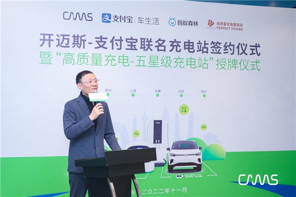 一直以来,支付宝作为互联网行业的科技领军企业,是我们理想的充电创新发展合作伙伴。开迈斯将在高品质充电服务与全国充电网络持续扩建的基础上,与支付宝联合打造更好的未来充电服务,构建充电网络生态,为新能源车主提供更智能、便捷、可靠的智慧充电解决方案。同时,我们将不断地探索全新充电服务模式,通过完成“高质量充电-五星级充电站”授牌与认证来参与规范行业标准,共同助推纯电汽车行业更健康高效的可持续发展。