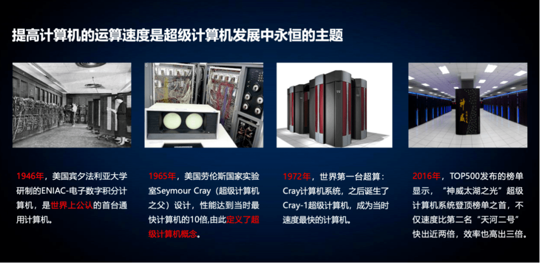 我国一向重视超算能力的建设,并将其作为国家科学与技术发展规划的重要方向,虽然起步相对较晚,但是发展非常快,目前已经步入世界领先行列。比如,“天河二号”“太湖之光”曾连续十次占据世界超算排行榜TOP500首位;可以说,在30年的时间里,中国超算产业实现了跨越式的发展。