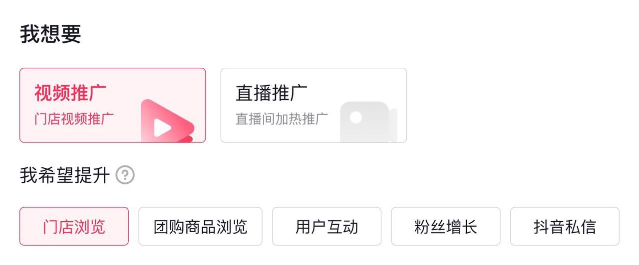推广视频的优化目标:门店浏览、商品浏览、用户互动、粉丝增长、抖音私信