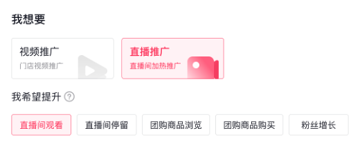 推广直播的优化目标:直播间观看、直播间停留、商品点击、商品购买、粉丝增长