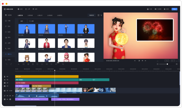在此次推出的云剪辑3.0版本中,美摄团队整合了数字人视频创作能力,采用模板化的包装方式,显著降低数字人内容创作门槛。使用者无需掌握代码、设计等相关知识,只需通过云剪辑平台提供的素材库就可以快速上手,无代码创作数字人视频。