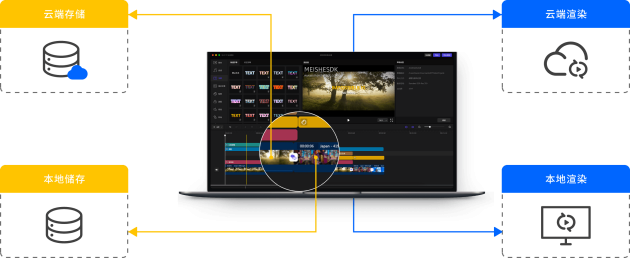 在探索更加高效的视频内容生产路径过程中,美摄团队创造性地打造出了“天地混剪”剪辑模式。“天”意指云端,“地”指本地,“天地混剪”即为基于视频切片流技术,实现本地视频与云端视频混合剪辑。在C/S架构下,待处理的本地视频无需上传至云平台服务器即可进行编辑,极大节省了素材上传时间,进一步简化了用户操作流程,将为用户带来更加高效的剪辑体验。