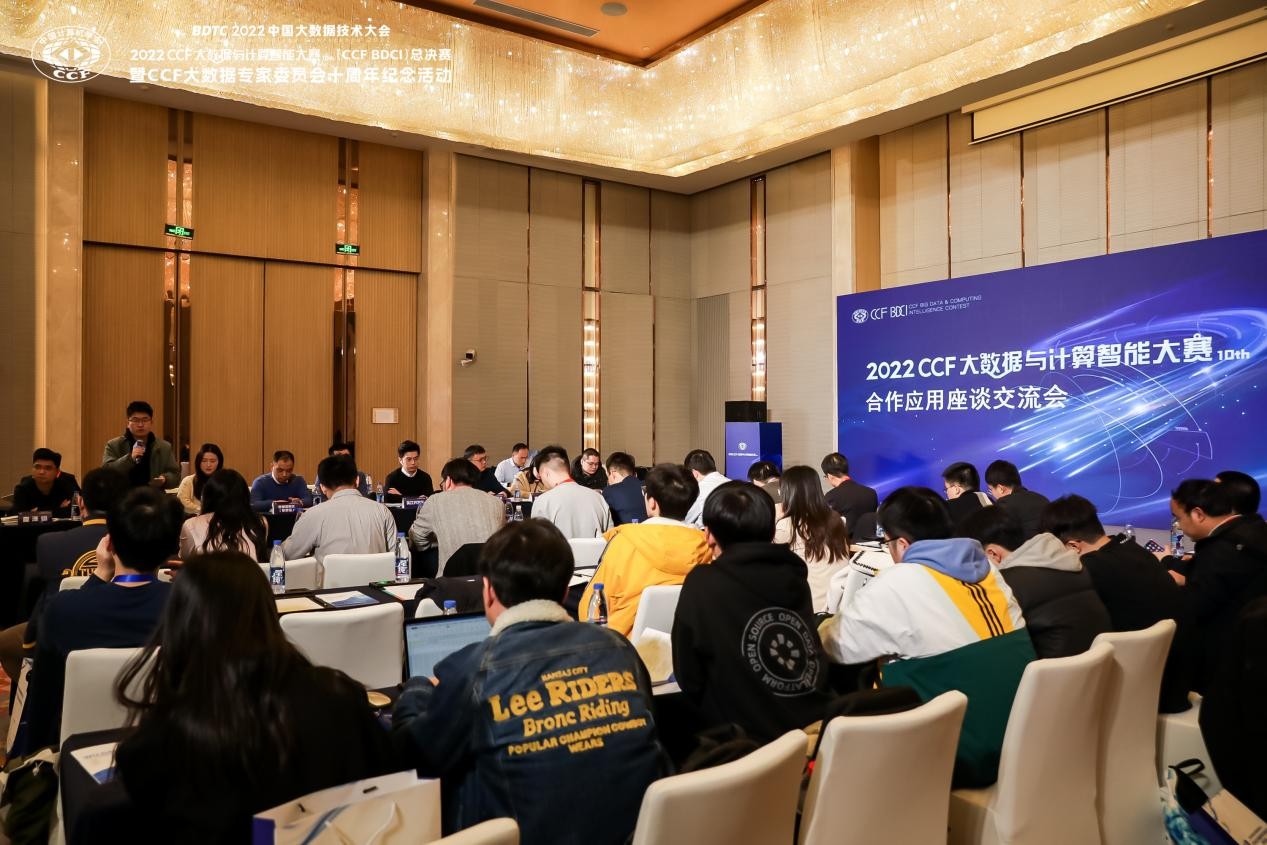 颁奖典礼结束后,在DataFountain数联众创CTO崔维福的主持下,CCF自然语言处理专业委员会秘书长万小军、CCF计算机应用专业委员会副主任陈学斌、CCF大数据专家委员会副秘书长&中科院计算所研究员靳小龙、百度杰出架构师&飞桨产品负责人毕然、数元灵创始人兼CEO朱亚东等嘉宾分别代表承大专委、学术界、产业界,围绕“人才与与产业发展”问题展开了圆桌会谈。