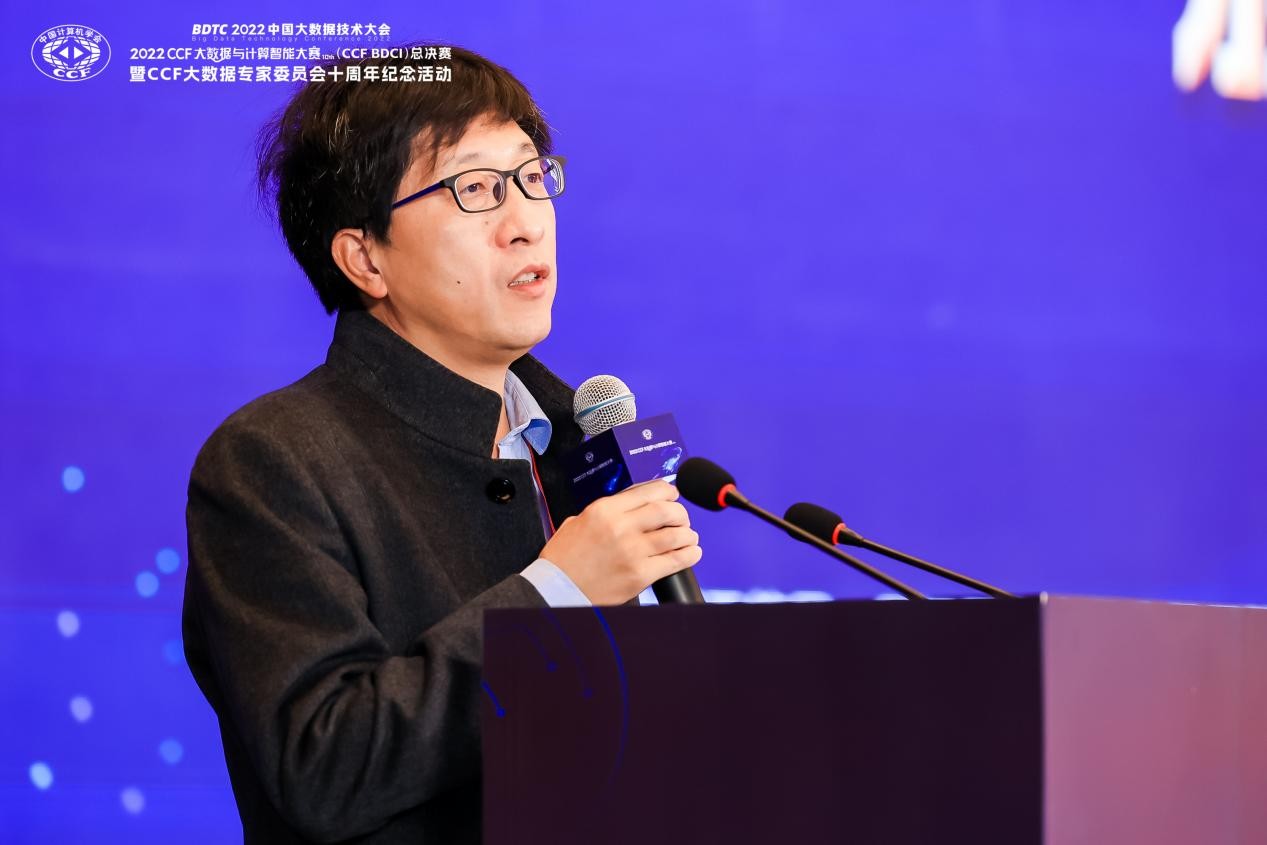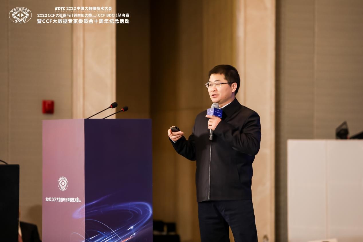 CCF大数据专家委员会主任杜小勇,代表大赛主要承办方总结了大赛十年来的主要特点。一是真问题,企业作为出题方把真实业务场景提供给了参赛选手去操作、解决和实践;二是广泛参与,大赛每年有数万选手参与,覆盖海内外的诸多企业与高校,既包括高校学生也包括社会从业者;三是得到了地方政府的高度支持,政府能够通过大赛选拔人才和项目,推动人才与产业资源的落地。