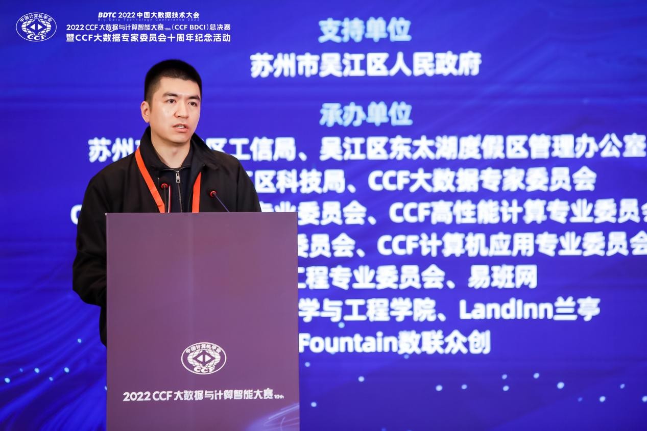 2月24日-25日,中国计算机学会(CCF)主办、苏州市吴江区人民政府支持,苏州市吴江区工信局、吴江区东太湖度假区管理办公室、苏州市吴江区科技局、CCF大数据专家委员会、CCF自然语言处理专业委员会、CCF高性能计算专业委员会、CCF计算机安全专业委员会、CCF计算机应用专业委员会、CCF软件工程专业委员会、易班网、苏州大学未来科学与工程学院、LandInn兰亭、DataFountain数联众创等多家组织单位共同承办,百度、华为战略合作的大数据与AI领域顶级盛事——第十届CCF大数据与计算智能大赛(CCF Big Data &Computing Intelligence Contest,简称CCF BDCI大赛)总决赛暨颁奖典礼在苏州吴江顺利举行。吴江区政府领导、大数据及人工智能领域学术与企业专家、投资机构、高校及大赛合作单位代表等多方代表汇聚,携手总决赛入围团队,共同见证了本届大赛的圆满收官。