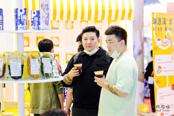 现场除了产品展示区吸引了众多围观,演示品鉴区更是挤满了人,现场出品的试饮几乎人手一杯,行业商家和消费者边品尝边讨论着饮品的用料和配方,鲜沐显然并不局限于“卖货”这么简单。