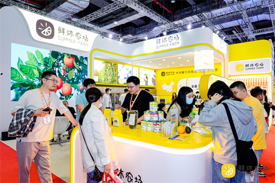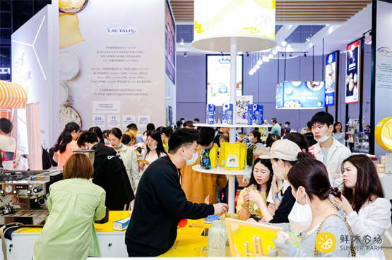 本次展会鲜沐延续了一贯活力且专业的平台风格,采用经典品牌色鲜柠黄作为展位主色调,开设展品展示区、演示品鉴区、互动打卡区及商务洽谈区,满足现场B端行业商家及C端消费者,从原料到产品从体验到合作的多方位需求。