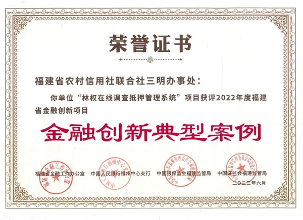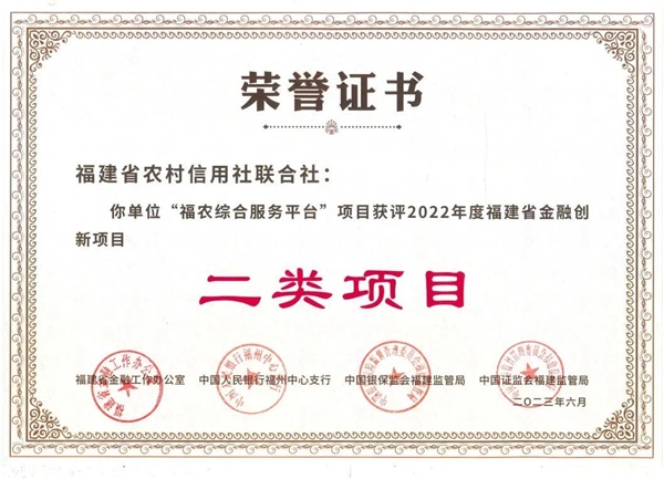 福建农信聚焦乡村振兴和农村“三变”改革,积极打造集农村集体“三资”管理、产权制度改革、农村产权交易、新农主体管理、乡村治理和预警监督等功能于一体的福农综合服务平台,推动农村资源要素上平台,探索金融助力农村要素市场化配置改革新模式。目前福农综合服务平台已在全省推广,得到各级涉农部门的大力支持,入选“2022年工信部第一批数字化转型百项优秀案例(农业类仅两席)”;其子系统新型农业经营主体管理及信用分级评价系统成功入选农业农村部2021年度金融支农创新试点、2022年农业农村部地方金融支农十大典型案例;产权制度改革系统及“福股贷”业务模式成功入选原中国银保监会“普惠金融案例库”,并获“在全面小康新起点上农村金融支持乡村振兴课题卓越案例”。