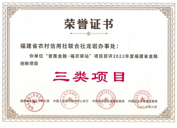 6月18日,以“践行‘深学争优 敢为争先 实干争效’行动,科技创新助力高质量发展”为主题的第二十一届中国·海峡创新项目成果交易会在福州盛大开幕。福建农信福农综合服务平台获评“2022年度福建省十大金融创新项目”二类项目;省农信联社龙岩办事处、龙岩市地方金融监督管理局“普惠金融·福农驿站”项目获评“2022年度福建省十大金融创新项目”三类项目,在十大项目中独占两席。同时,省农信联社三明办事处“林权在线调查抵押管理系统”也入围2022年度福建省金融创新项目20强。本次活动由福建省金融工作办公室、人行福州中心支行、福建银保监局、福建证监局联合主办,经主管(监管)部门合规性审查、专家评审、部门会审等环节,福农综合服务平台项目、“普惠金融·福农驿站”项目从参评项目中脱颖而出。