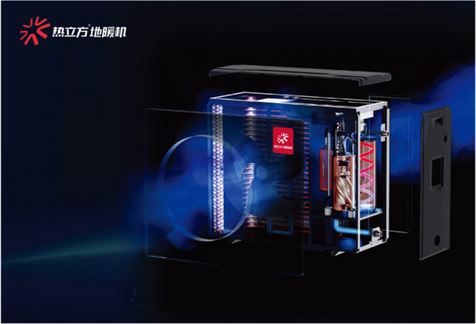 地暖机(Heat pump for floor heating)内部主要由压缩机、水氟换热器、风冷蒸发器、电子膨胀阀四大核心部件组成。