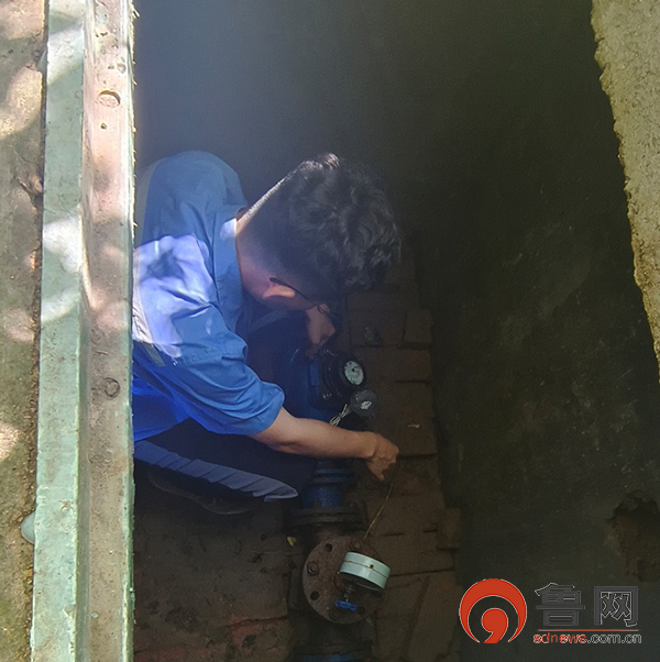在蓝谷中学北门外,竣工的供水主管道正在进行最后的收尾验收工作。崭新的水表池内,所有的供水设施已安装到位,开始正常运转。