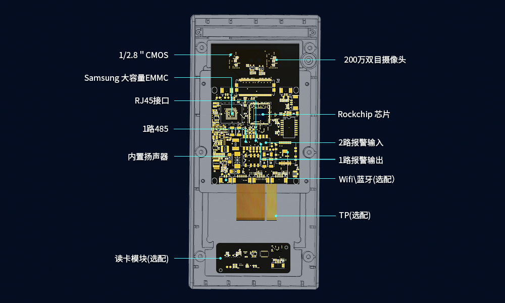 皓睛BRITEYE F10具备丰富的接口拓展能力,支持与其他设备的联动,如门禁控制器、报警系统等,同时支持语音对讲、对接WIFI、蓝牙、IC卡等,并支持对接多门禁的门禁系统。