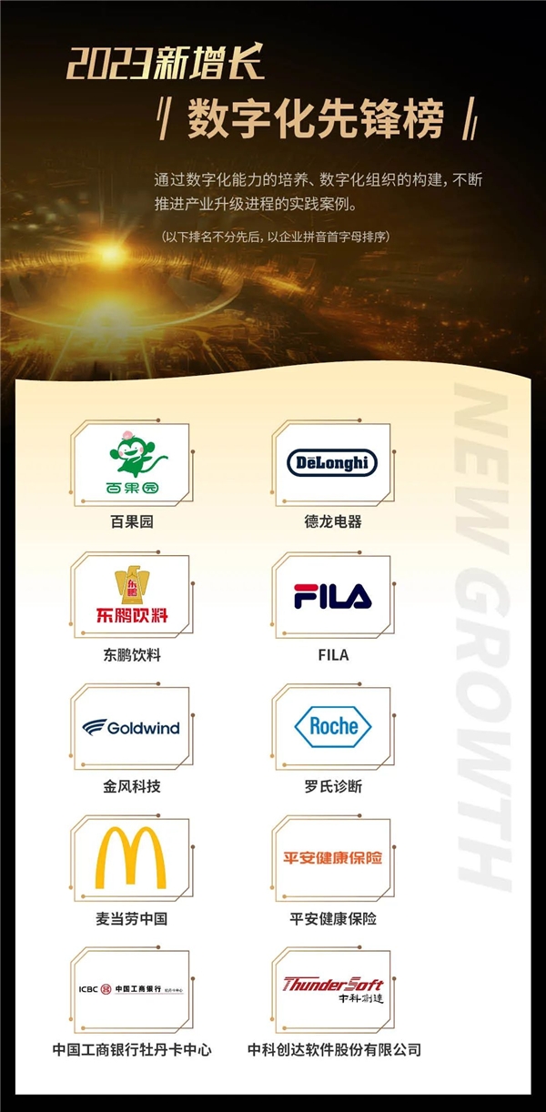 12月8日,新增长之夜暨2023新增长年度榜单发布仪式在京举办,“先锋人物榜”“新商业进化榜”“技术领导力榜”“敏捷团队榜”“数字化先锋榜”“ESG创新实践榜”六大榜单重磅揭晓。