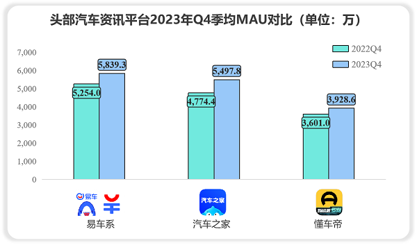 行业头部效应明显,易车系MAU连续13季度行业第一