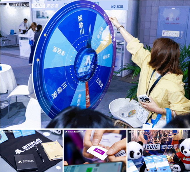 展会现场,安芯易展位幸运大转盘凭借丰厚奖品吸引众多访客参与。转盘飞转间,欢呼声不断。这场互动既是感恩的回馈,也以热情点燃合作契机,让欢乐成为未来携手的序章。