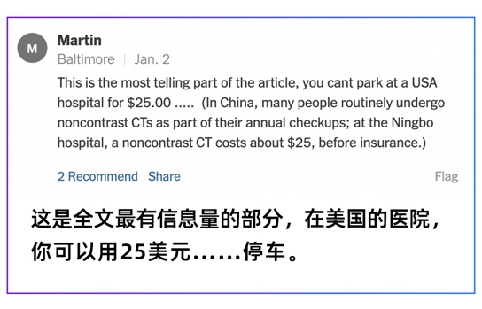 报道提到,该项“平扫CT+AI”的胰腺癌筛查费用仅需25美元,这更令美国网友震撼,纷纷吐槽起美国糟糕的医疗保障体系。在美国,一项普通的平扫CT高达数百美元,有人调侃,在美国医院,25美元只够付停车费。
