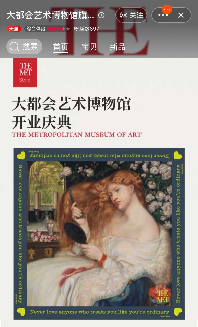 日前,又一世界级博物馆入驻天猫,这次的来客是纽约大都会艺术博物馆。迄今为止,天猫发起的新文创计划,已吸引了12家来自国内外的知名博物馆入驻。
