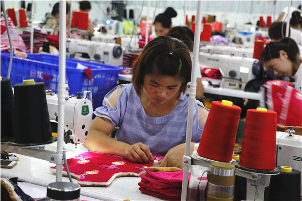 在太康县大许寨乡洪山庙村宽敞的扶贫车间里,伴随着数十台缝纫机的欢快鸣响,工人们正在紧张加工一批服装产品。
