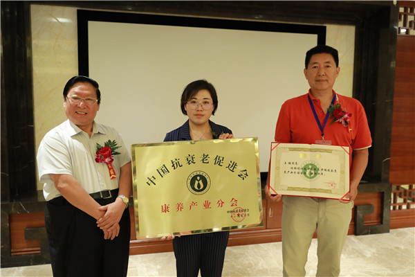 中国抗衰老促进会副理事长朱怡霖、秘书长熊吉莹为分会副会长季建群、陈健、花桂春、李锋、魏现芹、李曦,总干事朱应武颁发证书,给康养产业分会新增理事单位北京岐伯医典中医研究院、重庆建群房地产开发有限公司、康佰中国集团、大兴安岭超越野生浆果开发有限公司授牌。