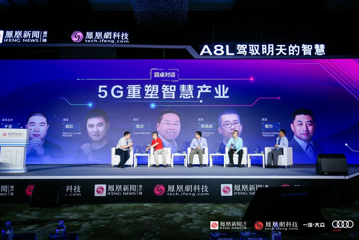在《5G重塑智慧产业》的圆桌对话中,凤凰网科技总监于浩、阿里巴巴AI Labs硬件终端总经理茹忆、文远知行首席运营官张力、高德地图未来交通研究中心主任苏岳龙、智加科技中国区总经理容力进行了深入探讨。