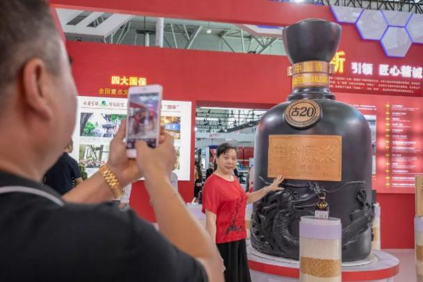 在主展馆内,高大上的智能制造企业展云集,而年份原浆展厅异常醒目。一尊硕大的年份原浆古20酒瓶稳稳的坐镇中央,成了访客自拍打卡的绝佳“景点”。古井展厅内浓香四溢,大批世界各地参观者闻香而来。精心准备的读亳有奖、全民开酿、扫码抽奖等多个互动活动,吸引游客络绎不绝。