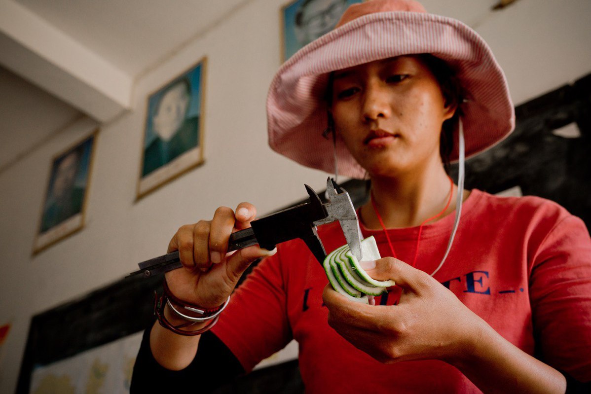 ▲龙陵基地技术人员对“云冠橙”进行技术检测,确保果实合格。(摄影:阿良)