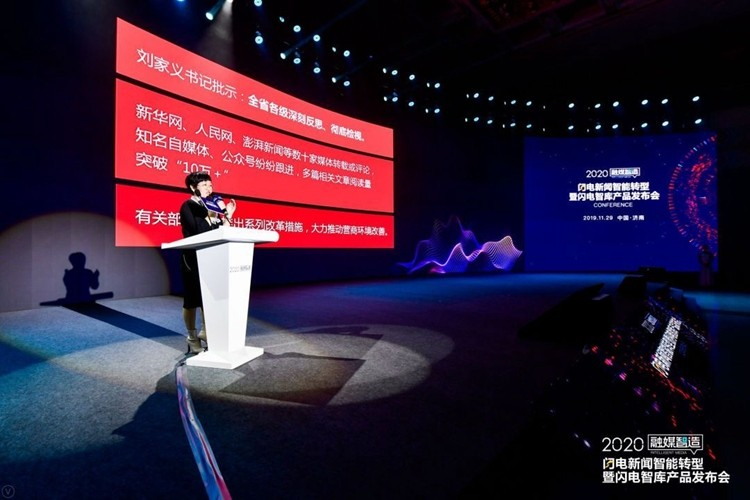齐鲁网·闪电新闻11月29日济南讯 11月29日下午,2020融媒智造——闪电新闻智能转型暨闪电智库产品发布会在济南南郊宾馆蓝色大厅举行。50余位山东省直单位领导、十六市市委宣传部分管副部长和八十余个县市区常委、宣传部长,以及上百家行业重点企业代表、相关领域专家等出席活动。今年以来,山东广电积极向智媒体转型,全力打造智库型媒体,通过数据舆情报告、融媒场景应用、创新视频表达、高端会议论坛等项目,为政府治理及企业发展赋能。