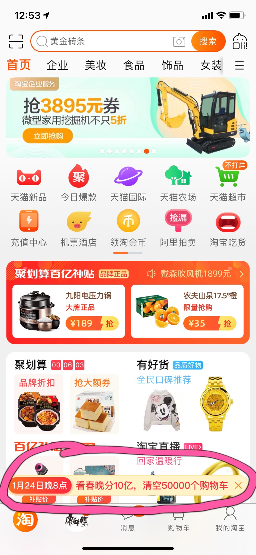 整个春晚期间将有4次机会,一次不行再点一次,如果都没有抽中,还有聚划算百亿补贴的底价优质商品可以抢购。今年春晚,聚划算百亿补贴将带来春晚史上力度最大的独家电商补贴:春晚当晚补贴10亿,整个过年期间补贴总额达到20亿。今天(1月20日),“聚划算百亿补贴春节期间补贴20亿”正式上线,每天补贴2亿。在盼着清空购物车之余,消费者也可以主动去抢购补贴后的低价商品测测运气。