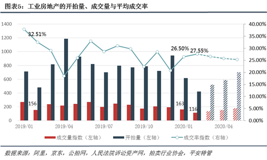 工业房地产:成交量减、成交率微升,起拍折扣指数、变现指数明显升高,工业类房产协同效益影响的溢价表现明显;