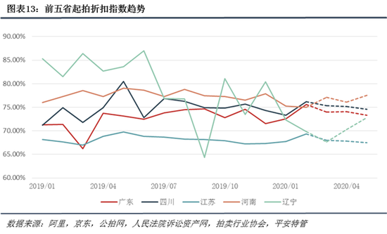 (三)起拍折扣指数:广东、四川、江苏增长明显,辽宁降幅明显
