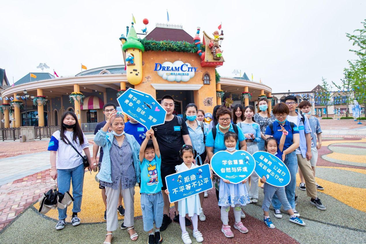 (“蓝骑士”亲子家庭与蓝精灵合影)