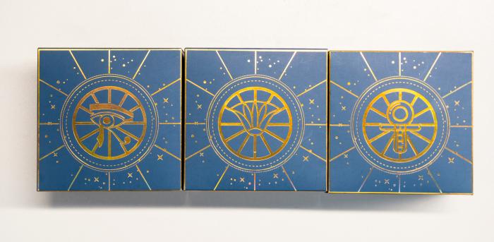 这款礼盒给人的感觉就一个字:高大上!普鲁士蓝加烫金外包装的设计灵感,来源于大英博物馆镇馆神兽“青铜猫坐像《盖亚·安德森猫》”,并融合了月亮女神巴斯特(Bast)、安卡、莲花、荷鲁斯之眼等元素,承载着“月亮女神”的祝福,自带高级质感,拿到手的消费者能瞬间被圈粉。盒内设计也十分别致,具备4大功能,打开它犹如打开了“潘多拉”魔盒。