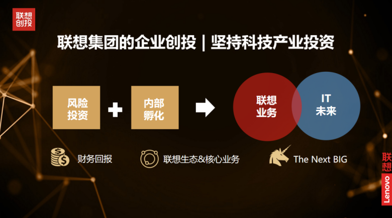 IT的未来跟联想的业务肯定有重叠,但肯定不是百分之百重叠,把这个基本定位想清楚之后,我们要通过不断地推动被投企业与联想生态合作,过去4年多,我们也是一直坚持这么做的。