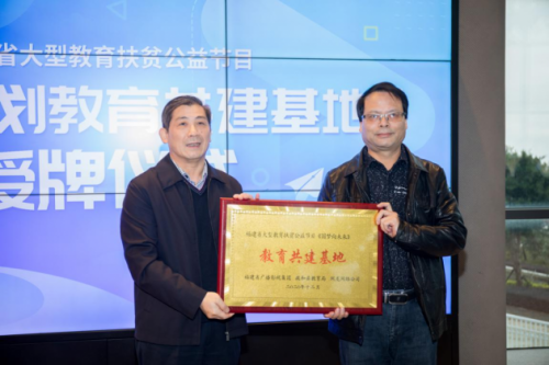 省广影集团副董事长刘宜民(左)向南平市政和县教育局授牌